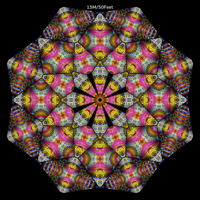 Experimental Area UV Stretch Fractal and Geometry Canopy Mandala 12/24 Petals 10Meter/33 Feet diameter