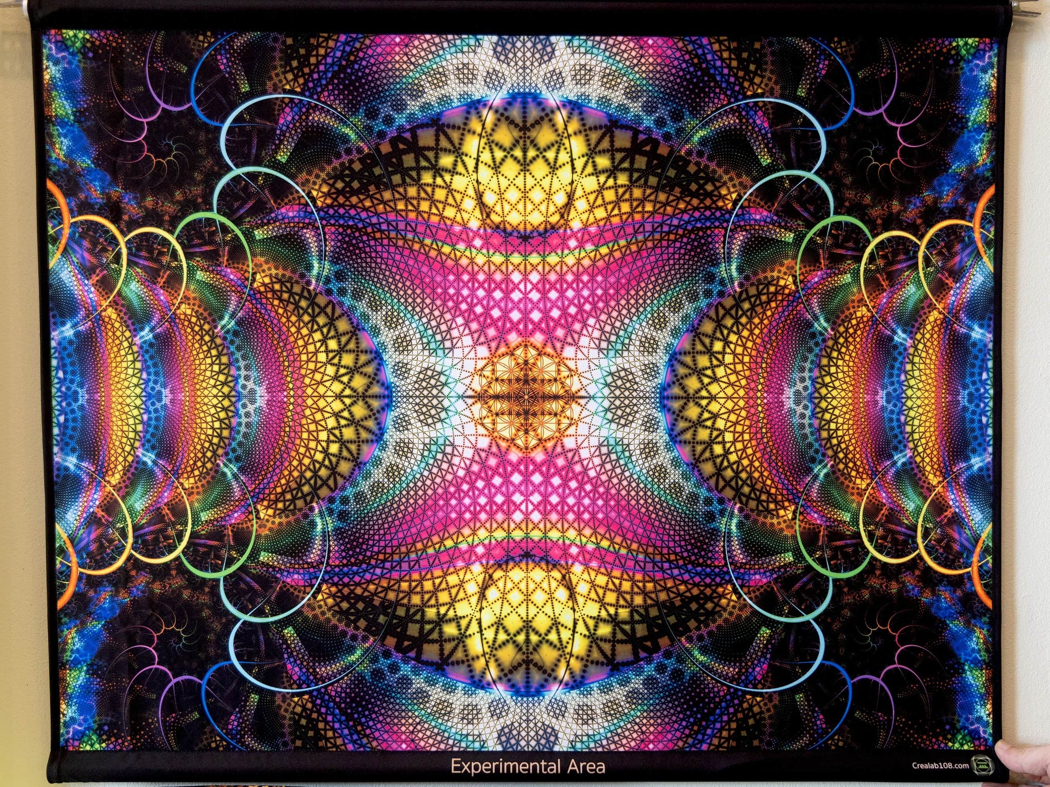 Crealab108 Horizontal Tapestry 75/150cm - 29.5/59 inches pockets finishing Experimental Area UV Psychedelic Fractal Tapestry Experimental Area UV Psychedelic Fractal Tapestry