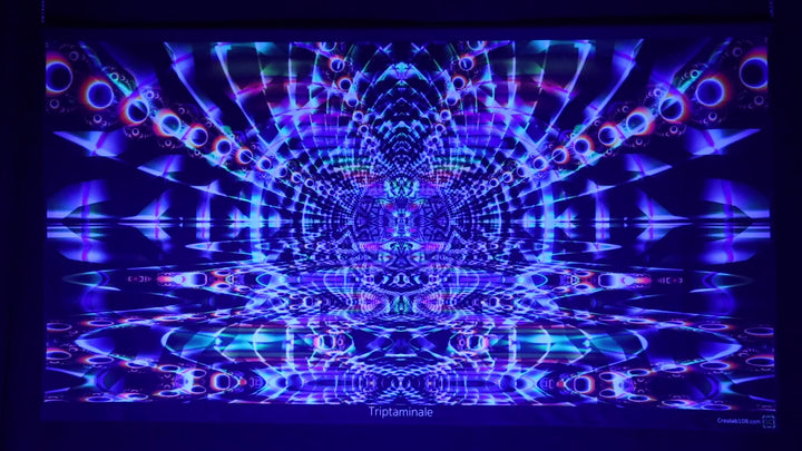 UV trippy psychedelic fractal tapestry backdrop wall hanging black light by Crealab108 koh Pha ngan home parties festival decor