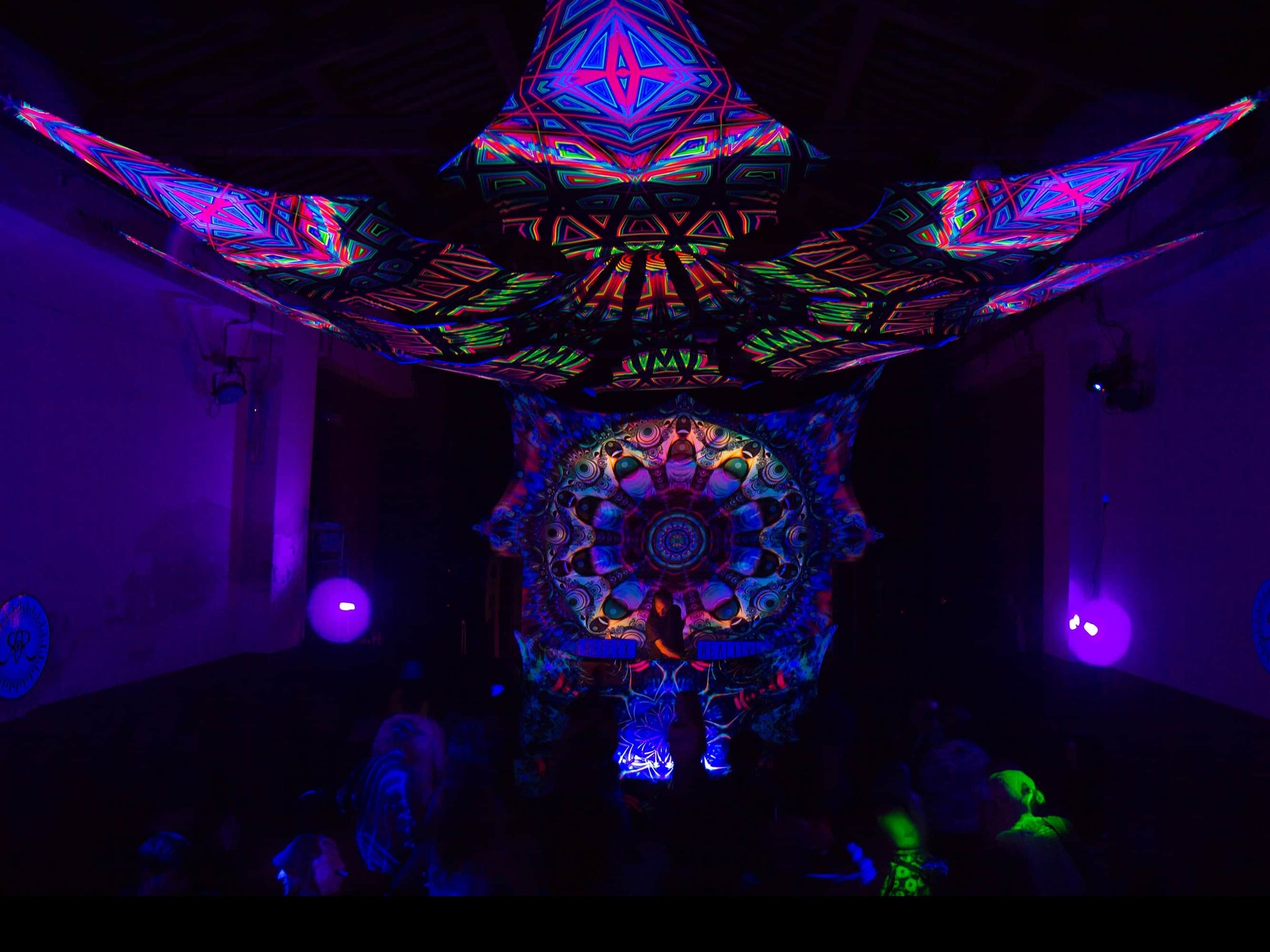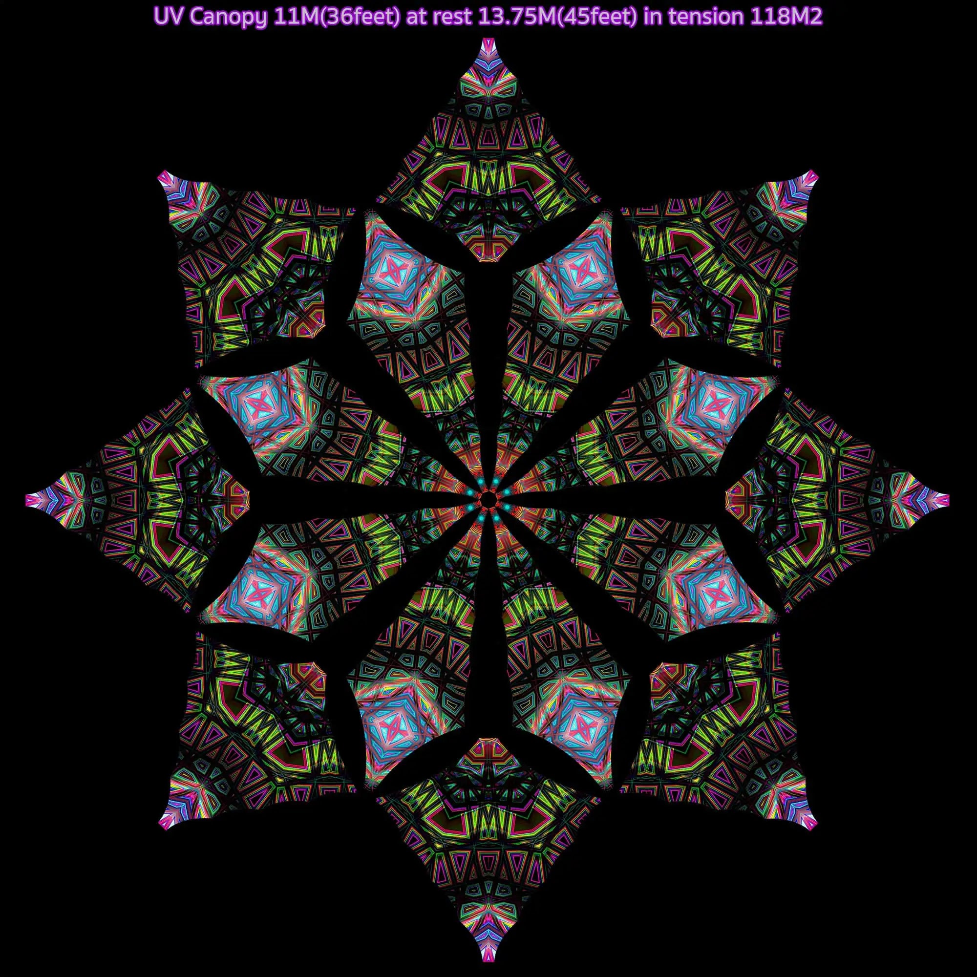 That star shape stretch fractal canopy is printed with UV fluorescent ink and it is washable without losing colors.