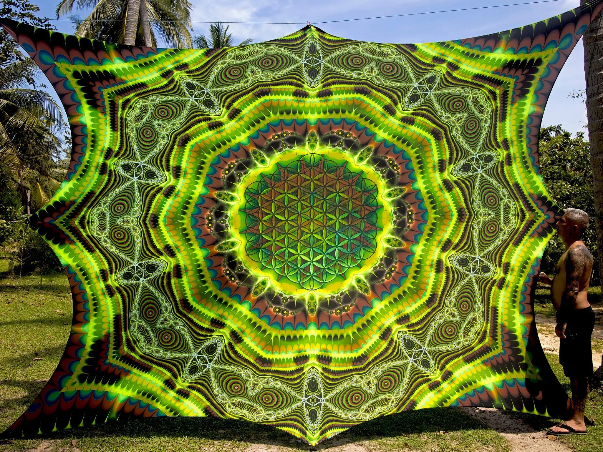 Crealab108 Horizontal Tapestry 130/150cm - 51/59inches pockets up/down finishing Sawadee Life UV Psychedelic Fractal & Sacred Geometry Flower of Life Sawadee Life UV Psychedelic Fractal & Sacred Geometry Flower of Life