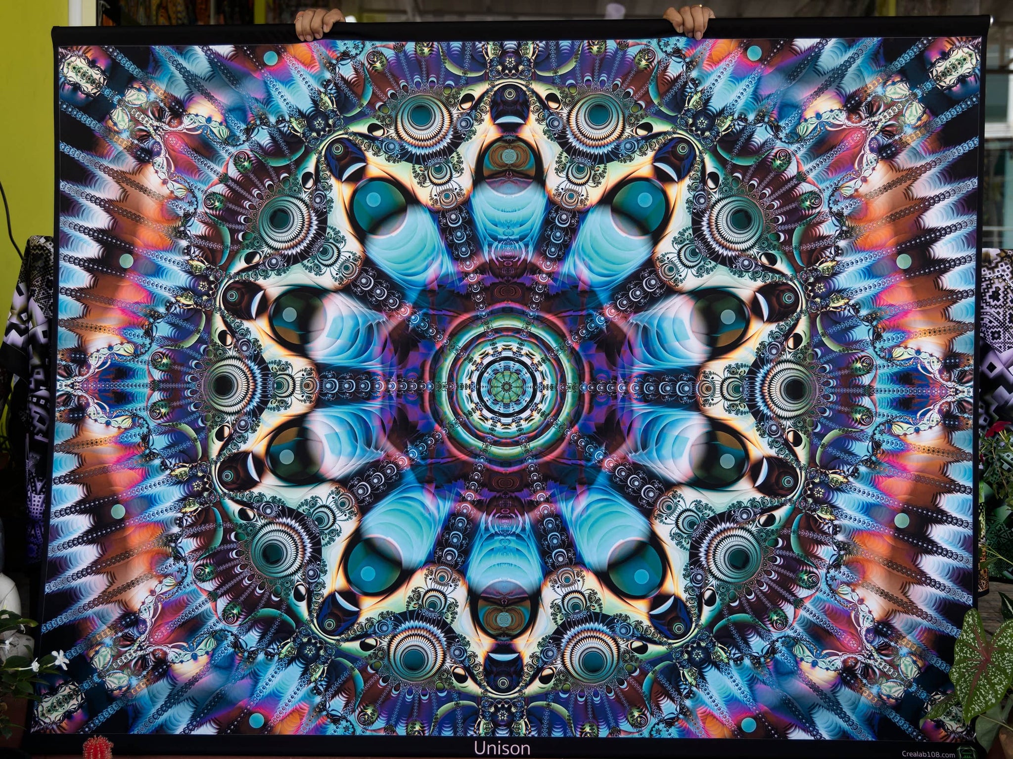 Crealab108 Horizontal Tapestry 120/150cm - 47/59inches pockets up/down finishing Unison UV Psychedelic Fractal Mandala Tapestry Unison UV Psychedelic Fractal Mandala Tapestry