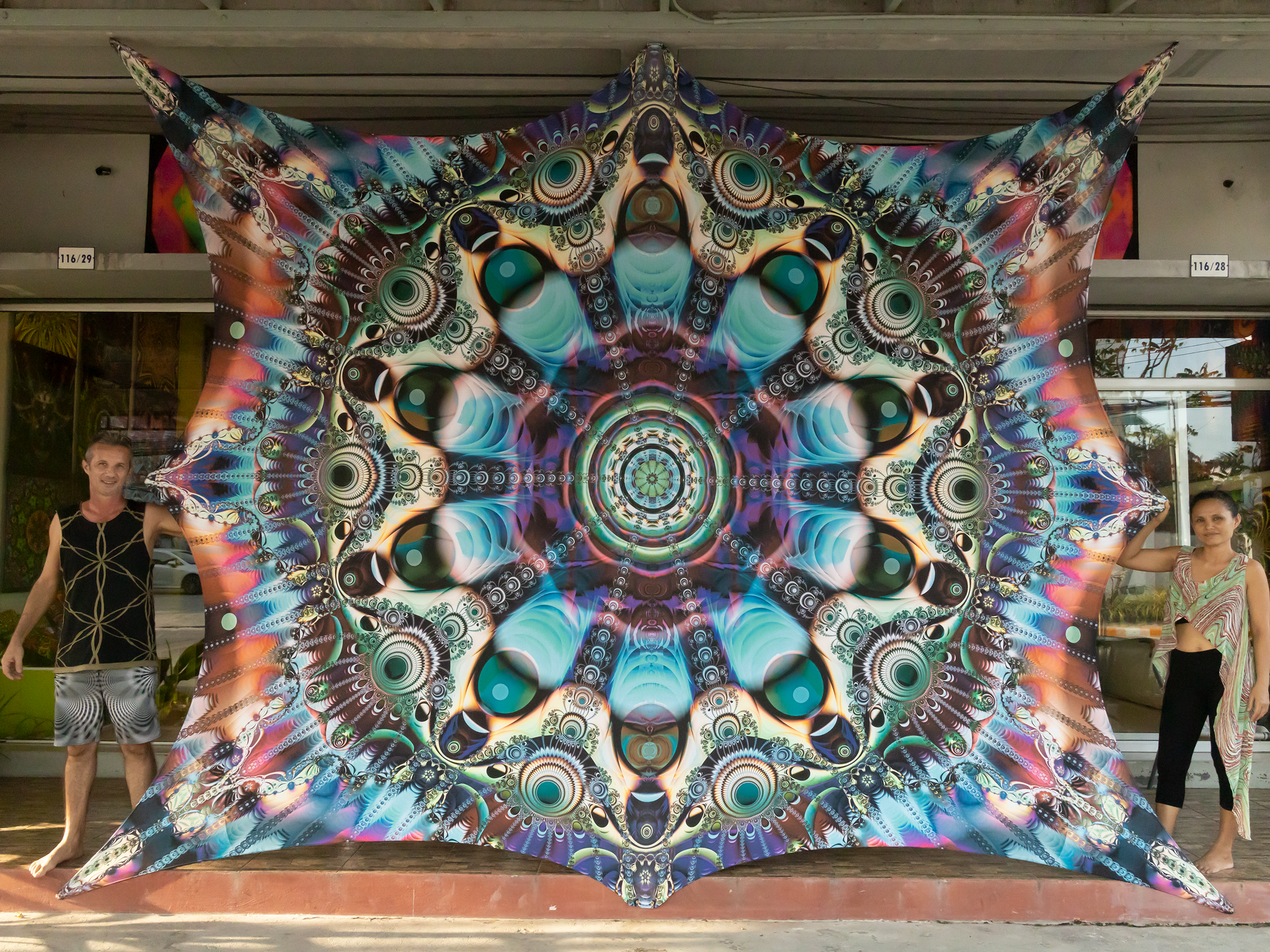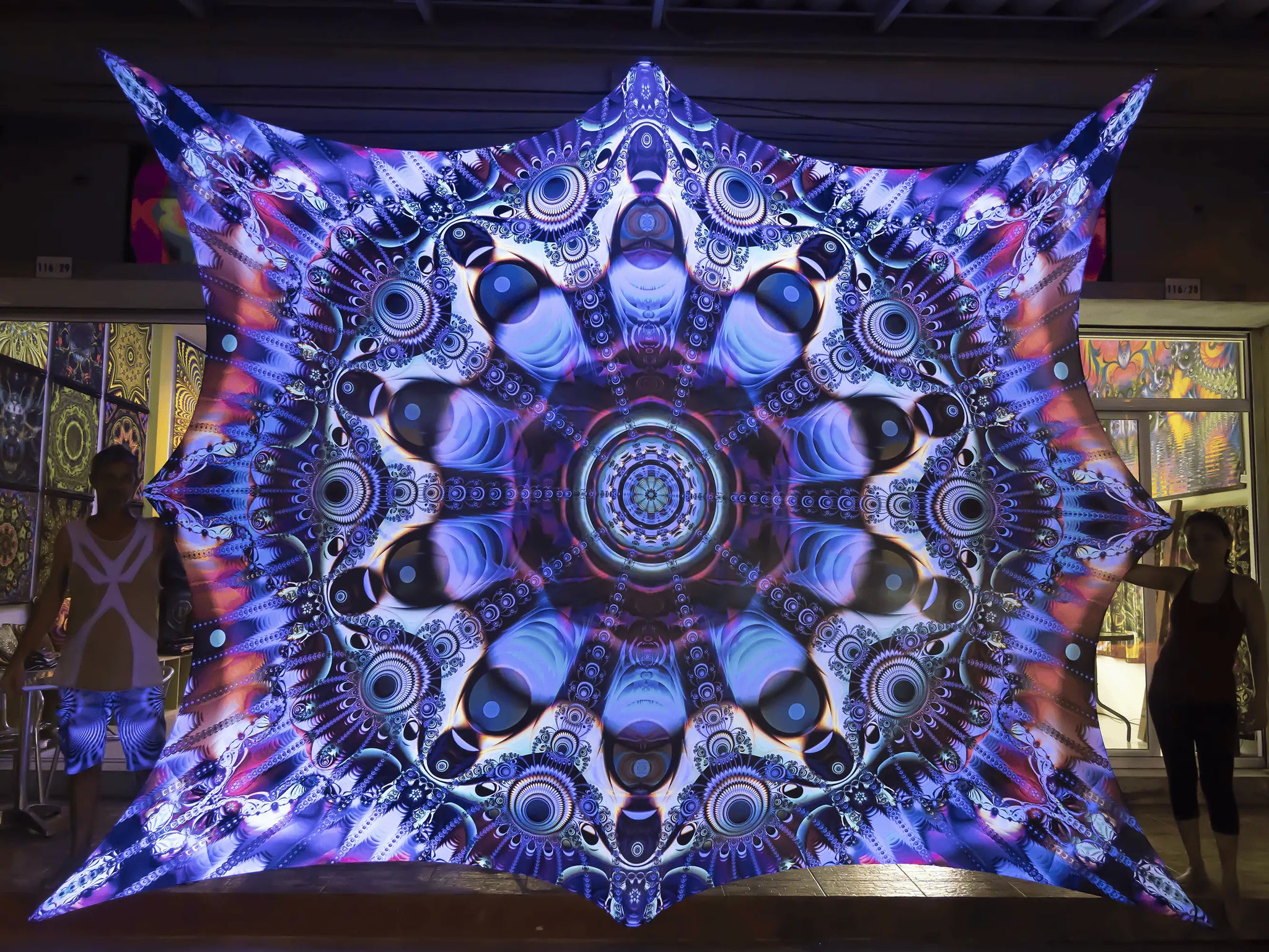 Crealab108 Horizontal Tapestry 310/412cm - 122/162inches eyelets on reinforced band with curves shape finishing Unison UV Psychedelic Fractal Mandala Tapestry Unison UV Psychedelic Fractal Mandala Tapestry