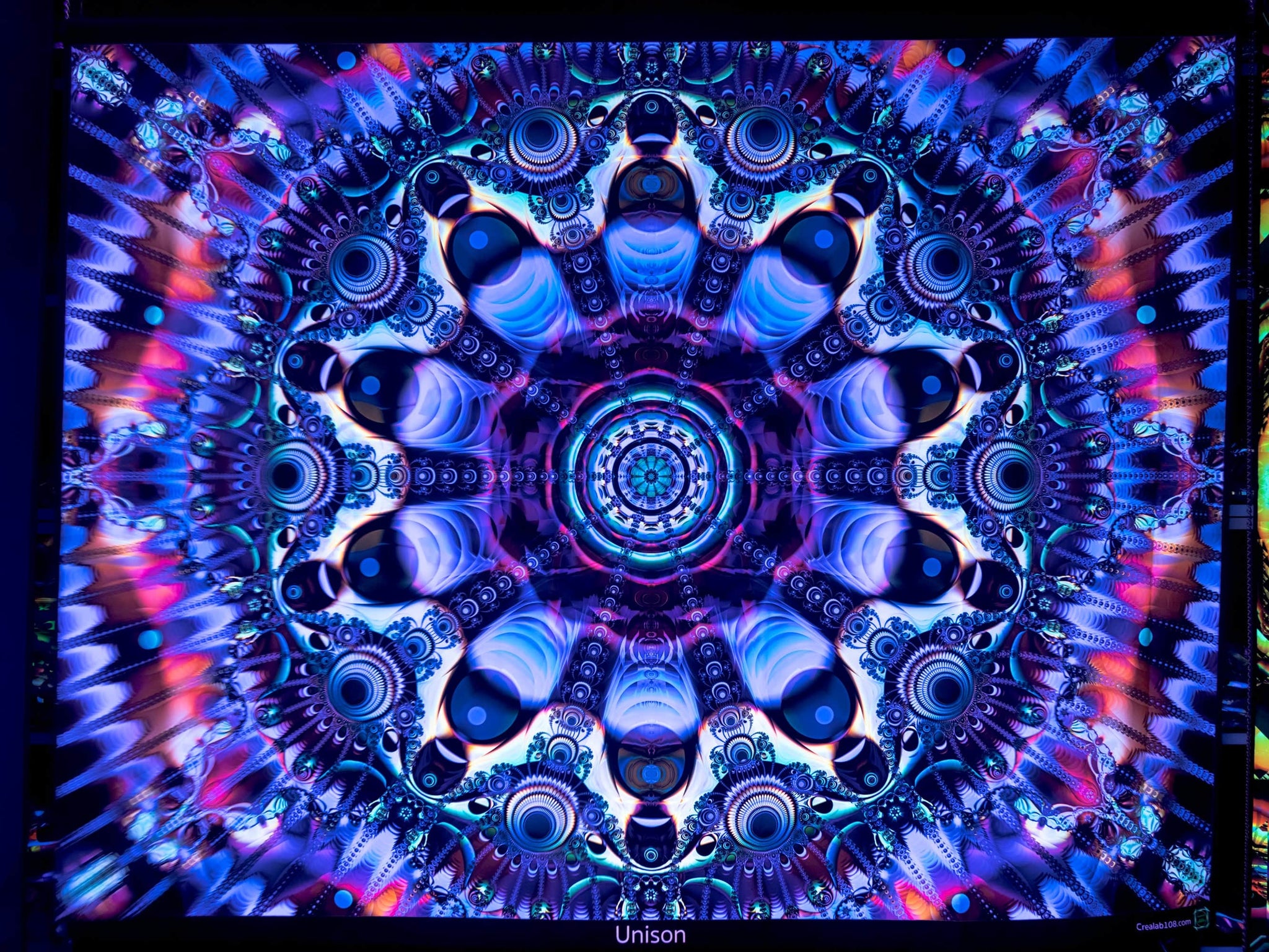 Crealab108 Horizontal Tapestry 150/200cm - 59/78inches eyelets on reinforced band finishing Unison UV Psychedelic Fractal Mandala Tapestry Unison UV Psychedelic Fractal Mandala Tapestry